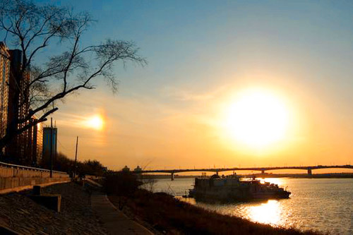 5月27日早晨7時20分許,不少出來晨練的烏魯木齊市民看到這樣一個奇特的景象——天空中出現了幾個太陽。