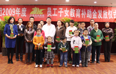 11月1日,華春投資集團員工的近百名子女歡天喜地的迎來了一個在首府乃至在全疆絕無僅有的特殊節日——華春投資集團舉辦2009年首批員工子女教育補助金的啟動儀式,當天就有84個員工家庭的子女領到了近十萬元教育補助金,其中有一個員工家庭的3個子女同時獲得教育補助金,另一個員工家庭的兩個子女獲得了7000元。