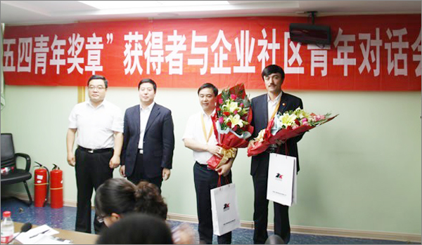 由自治區團委主辦,烏魯木齊市團委承辦的新疆五四青年獎章獲得者與企業社區青年對話活動,于5月6日下午在新疆華春投資集團舉行。來自首府十余個企業70余名青年代表參加了對話會,共同分享新一屆新疆五四青年獎章獲得者楊述友和艾沙江•尼扎木丁他們的成長經歷和奮斗故事。自治區團委副書記曾冠軍、城市青年工作部部長、副部長出席了座談會,會議由團市委副書記毛明•依明主持。
