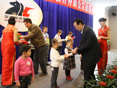 10月(yue)24日,在新疆(jiang)華(hua)春投資集團舉辦的(de)2010年(nian)度的(de)員(yuan)工(gong)子(zi)女(nv)(nv)教育補助(zhu)金發(fa)放儀式上(shang),華(hua)春員(yuan)工(gong)的(de)119名子(zi)女(nv)(nv)從(cong)學前(qian)班的(de)孩子(zi)到在校大學生相聚(ju)在一起,一派喜氣洋洋、興高采烈,如同(tong)慶祝(zhu)一個喜慶的(de)節日,華(hua)春為員(yuan)工(gong)的(de)子(zi)女(nv)(nv)發(fa)放了(le)(le)近10萬元的(de)教育補助(zhu)金。自(zi)治(zhi)區(qu)工(gong)商(shang)聯(lian)的(de)領導和自(zi)治(zhi)區(qu)黨(dang)委(wei)政研室有(you)關部門(men)的(de)負責(ze)人(ren),參(can)加(jia)了(le)(le)發(fa)放儀式并為華(hua)春員(yuan)工(gong)的(de)子(zi)女(nv)(nv)發(fa)放補助(zhu)金。