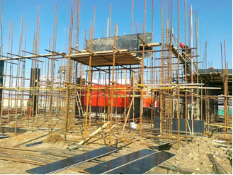 食堂(tang)為框(kuang)架結構二層,一層柱、梁、板施工完(wan)畢,二層框(kuang)架柱鋼筋已(yi)綁扎完(wan)畢。