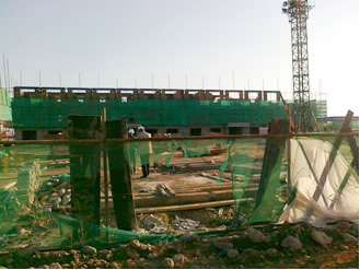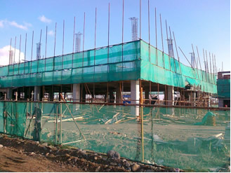 宿(su)舍(she)樓一、二(er)層(ceng)主體已施工完畢(bi),正在(zai)砌筑三(san)層(ceng)磚(zhuan)墻