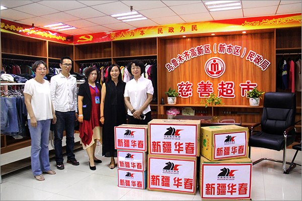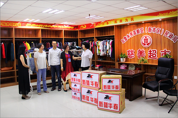 在新疆日漸臨近的寒冷氣候到來之前,新疆華春投資集團副總裁兼工會主席高青攜企業文化中心管理人員一行,代表華春團隊于8月18日將裝滿7箱的羽絨服、毛衣、風衣等衣物,送到烏魯木齊高新區(新市區)慈善超市,由其送與需要救助的社會困難群眾、弱勢群體手中,使他們感受到社會的溫曖。高新區(新市區)民政局辦公室武主任和慈善超市的工作人員,對華春集團關注民生奉獻愛心的善舉表示誠摯的感謝。