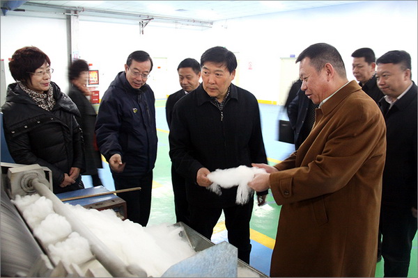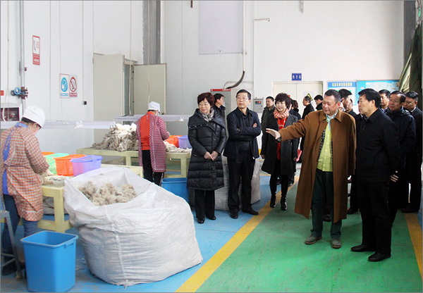 郭永輝一行從羊絨洗梳到羊絨染色、梳紡等羊絨服裝制品全程生產加工進行了考察。新疆華春集團李成功總裁與集團高管及華春毛紡管理人員就華春毛紡生產經營情況,向郭永輝一行進行了匯報。郭永輝常委指出,要盡快培育自己的品牌,增強羊絨服裝制品的附加值。對華春毛紡被定為AAA國家級旅游景區以來的工作給予了肯定。