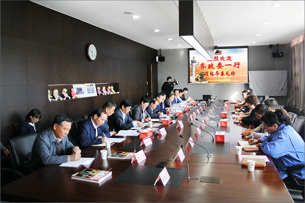 在國慶節即將到來的前夕,兵團第六師五家渠市黨委書記、政委齊新平帶領師市相關部門領導一行十多人,到華春毛紡調研,與華春投資集團部分高管和華春毛紡管理人員進行了座談。華春集團李成功總裁就華春毛紡生產經營、產品銷售、員工情況以及遇到的問題等,向齊新平政委一行做了匯報。
