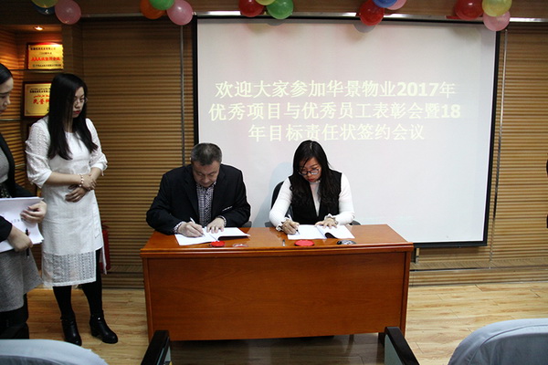 凝聚力量超越期待華景物業舉辦2017年優秀表彰暨2018年目標責任狀簽約會