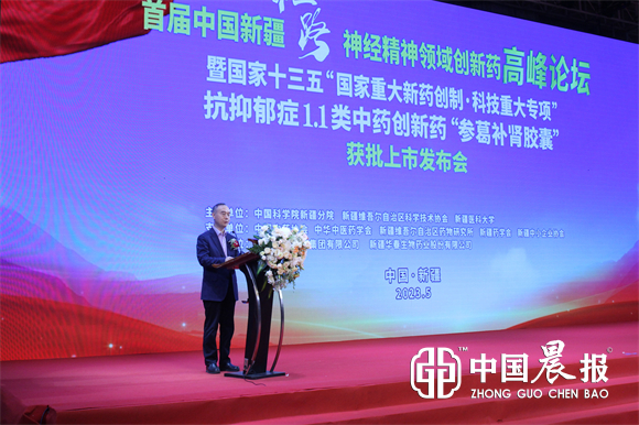 5月26日,由中國科學院新疆分院、新疆科學技術協會與新疆醫科大學聯合主辦的首屆中國新疆“一帶一路”神經精神領域創新藥高峰論壇暨參葛補腎膠囊獲批上市發布會,在烏魯木齊市舉行。會上,由新疆華春生物藥業股份有限公司與清華大學生命科學學院聯合研發的抗抑郁癥1.1類中藥創新藥“參葛補腎膠囊”上市。