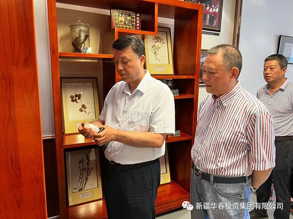 阿布力米提·伊力廳長一行首先參觀了華春企業文化中心,了解華春集團產業板塊和企業在新疆28年來的發展歷程、中藥創新藥領域科研成果。