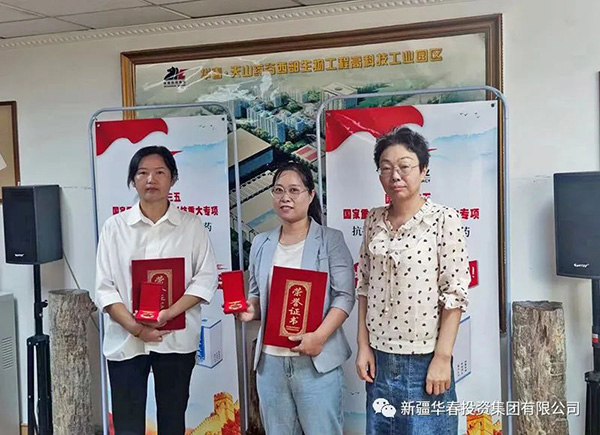 表彰會由集團執行總裁鄧潔文主持,她首先向兩位獲獎者即集團下屬的新疆華春生物藥業股份有限公司營銷管理中心商務部招投標專員姜雪、新疆恒潤實業有限公司總經理特別助理陳艷表示祝賀,勉勵受表彰的員工要再接再厲,在今后的工作中再創佳績、建立新功。為兩位愛崗敬業模范分別頒發了榮譽證書,并每人給予2000元獎金。