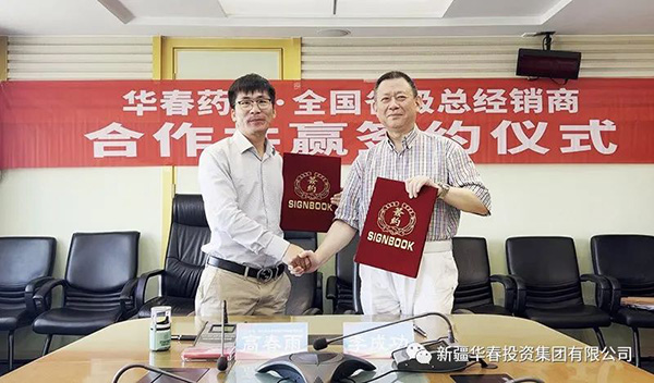 新疆華春生物藥業股份有限公司(簡稱華春生物藥業)與第二批全國省級總經銷商合作協議簽署儀式,于8月24日在新疆華春投資集團舉行。新疆華春投資集團董事局主席兼總裁、華春生物藥業董事長李成功先生,分別與江蘇龘龍醫藥科技有限公司研發負責人張永昌(江蘇省代)、北京麥爾信康科技發展有限公司總經理王慶進(北京省代)、河北思平生物醫藥科技有限公司總經理高春雨(河北省代),簽訂了《“參葛補腎膠囊”推廣服務協議暨省級總經銷協議》。華春生物藥業相關技術與管理人員參加簽署儀式。