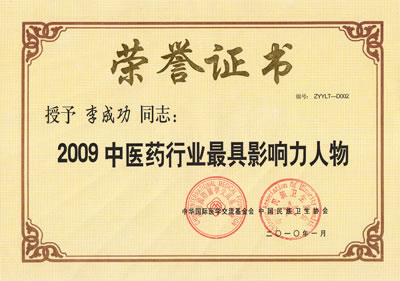 由中華國際醫學交流基金會、中國民族衛生協會主辦的“第四屆中醫藥發展論壇暨新中國60年中醫藥成就展”于1月10日在北京人民大會堂隆重舉行。開幕式上,國家及相關部委的領導人為中國醫藥界獲獎企業與個人頒發了獎牌與榮譽證書,新疆華春投資集團榮獲《2009年中醫藥事業發展杰出貢獻獎》、《2009年中醫藥繼承與創新獎》,總裁李成功先生被評為“2009中醫藥行業最具影響力人物”。