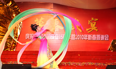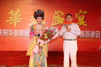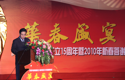 大型舞蹈《甜甜的歌兒迎賓客》拉開了慶典晚會的序幕,自治區工商聯黨組副書記、常務副主席陳建華發表了熱情洋溢的致辭:“過去的15年,華春投資集團在創造社會財富、加快步伐的同時,積極主動、義不容辭地承擔社會責任,創造就業機會。關愛企業員工,在全區民營企業中率先建立員工子女助學基金和員工父母敬老基金,大力開展捐資助學活動,積極參與光彩事業和社會公益事業,一次次為社會弱勢群體奉獻出了華春人的一片愛心。在15年的發展歷程中,華春投資集團的努力,得到國家和社會的公認,獲得了諸多令業內贊嘆的榮譽。歷史又將進入了一個新的起點,2010年是國務院“非公36條”和自治區黨委8號文件出臺五周年,今年5月自治區將召開推動非公有制企業和中小企業發展的工作會議,華春投資集團將迎來快速發展的新機遇。在此,我們衷心的祝愿:華春投資集團在新的起點上,更加振奮精神、更加團結奮斗、更加開拓前進,努力迎來2個、第3個、更多加更輝煌的15年!在此,我們衷心的希望:華春團隊在今后的若干個15年中,為新疆經濟發展、為整個社會,再源源不斷的譜寫出創新、奮發、輝煌的新篇章!”
