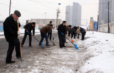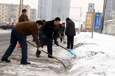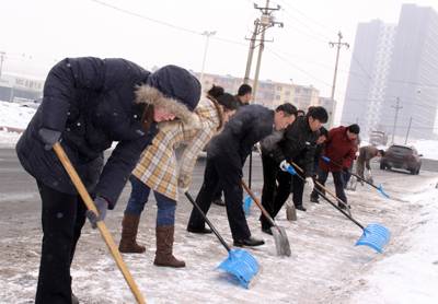 于(yu)第(di)二天周六(liu)休息日,華春投資集團黨(dang)委組織全體黨(dang)員(yuan)(yuan)進行(xing)了新年的第(di)一次義(yi)務勞動,掃除(chu)通往蘇杭明珠小(xiao)區四平路(lu)上的積雪,為在這里上班(ban)的員(yuan)(yuan)工(gong)和小(xiao)區居(ju)民提供了出行(xing)的方便。