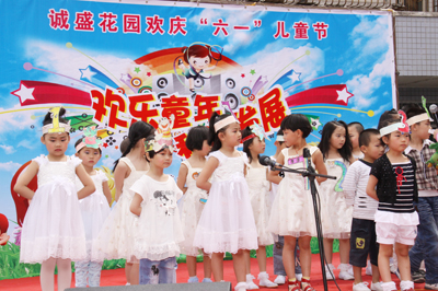 誠盛花園寶貝幼稚園的小朋友和專業演職人員同臺獻藝,小演員的舞蹈、時裝秀、朗誦、算術技能、器樂等天真爛漫的表演,令人開懷,華景物業公司為小朋友發放了節日禮品。