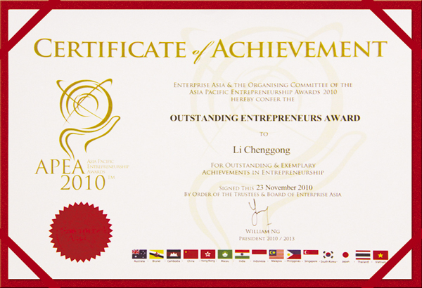 “亞(ya)太(tai)企(qi)(qi)業精(jing)神獎(jiang)2010—中國”盛大(da)頒獎(jiang)典禮于11月(yue)23日在上海舉(ju)行,新疆華春投資集團董(dong)事局主席兼總裁李成功先生榮獲“亞(ya)太(tai)企(qi)(qi)業精(jing)神2010—中國卓越(yue)企(qi)(qi)業家(jia)”獎(jiang)。