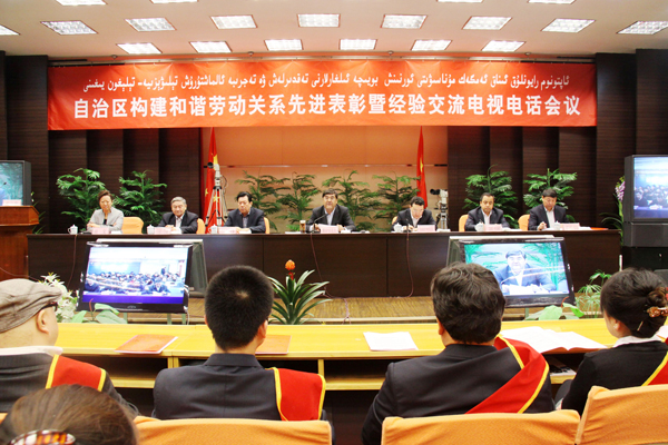 自治(zhi)區構建(jian)和諧勞動關(guan)系先進表彰暨(ji)經驗交流電視電話會議出席的領導