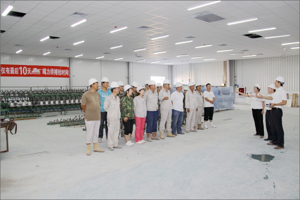 8月20日,距華春毛紡工業園項目整體竣工要求的日期只有最后的10天,新疆華春投資集團工會主席高青攜編輯部全員前往五家渠毛紡工業園項目建設工地,號召項目現場第一線的人員們“僅有最后10天 竭力拼搏搶時間”!在充分肯定了所有一線人員努力奮戰的同時,希望大家繼續發揚工人階級主人翁的精神,毛紡工業園項目工程已經進入最后的沖刺攻堅階段,在保證施工安全的前提下,保質量、搶時間、抓進度,一刻不放松、一天不耽誤,不辜負華春全員和李成功總裁的期望,早日建成華春毛紡工業園,給所有關心和支持此項目的社會各界,交出一份滿意的答卷。