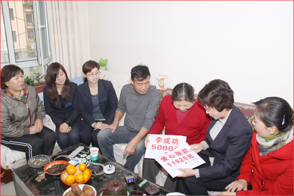 2012年10月17日,盡管(guan)季節已進(jin)入(ru)瑟瑟寒冷的(de)深秋(qiu),但新疆(jiang)華(hua)(hua)春(chun)(chun)投(tou)資(zi)集(ji)團的(de)愛心捐款,為患(huan)病員(yuan)工(gong)(gong)送(song)去了溫情(qing)暖意。新疆(jiang)華(hua)(hua)春(chun)(chun)投(tou)資(zi)集(ji)團工(gong)(gong)會主席(xi)高青與人力資(zi)源(yuan)部(bu)、集(ji)團子公司華(hua)(hua)景物業(ye)及(ji)編(bian)輯(ji)部(bu)的(de)管(guan)理(li)人員(yuan)一行(xing),代(dai)表新疆(jiang)華(hua)(hua)春(chun)(chun)投(tou)資(zi)集(ji)團李成功總(zong)(zong)裁和華(hua)(hua)春(chun)(chun)全員(yuan)前(qian)去親切慰問患(huan)病的(de)員(yuan)工(gong)(gong)杜菊(ju)萍,當(dang)她接過李成功總(zong)(zong)裁和華(hua)(hua)春(chun)(chun)員(yuan)工(gong)(gong)16925元的(de)愛心捐款時,流(liu)下感(gan)動的(de)淚水。杜菊(ju)萍的(de)丈(zhang)夫激動的(de)一再說:“太(tai)(tai)感(gan)謝(xie)華(hua)(hua)春(chun)(chun)老總(zong)(zong)和華(hua)(hua)春(chun)(chun)人了,對一個基層員(yuan)工(gong)(gong)還這(zhe)樣的(de)關心,太(tai)(tai)感(gan)謝(xie)、太(tai)(tai)感(gan)謝(xie)了!”