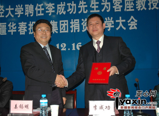 《亞心網》2009.12.16報道:華春集團總裁李成功受聘財大客座教授