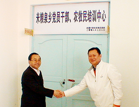新疆華春投資集團董事局主席兼總裁李成功先生在捐贈儀式上說: 新疆華春投資集團是從內地到新疆投資的民營企業,在新疆扎根發展十多年來,得到了超常規的發展。新疆,已成為我的第二故鄉。企業發展壯大了,作為一個有社會責任感的民營企業,就應該理所當然的大力發揚“致富思源、富而思進”的精神,回報新疆各族人民,積極參與新疆的新農村建設,幫助我的第二故鄉的鄉親們發家致富,是我們華春投資集團應盡的責任和義務。為了使米糧泉回族鄉培養一批信息科技帶頭人,推進農村生產和農民生活信息化技術的應用,新疆華春投資集團決定,為米糧泉回族鄉捐贈40臺電腦和10萬元現金,提高農民科技素質,通過網絡,及時了解國家政策和應用各類致富信息,查詢到更多的致富項目,以促進當地農民的物質和精神生活的進一步提高。