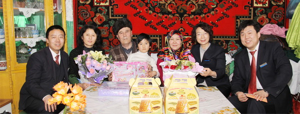 2012年的“三八”國際勞動婦女節期間,華春投資集團工會主席高青攜部分管理人員,帶著總裁李成功先生和華春全員的深情厚誼,特地前往已故員工阿里木•阿吾東的家,看望慰問了其父母與妻子、孩子,送上鮮花和慰問品,致以誠摯的關愛之情并送上節日的祝福,使已故員工的家屬真切感受到了來自華春這個大家庭的關懷和溫暖。