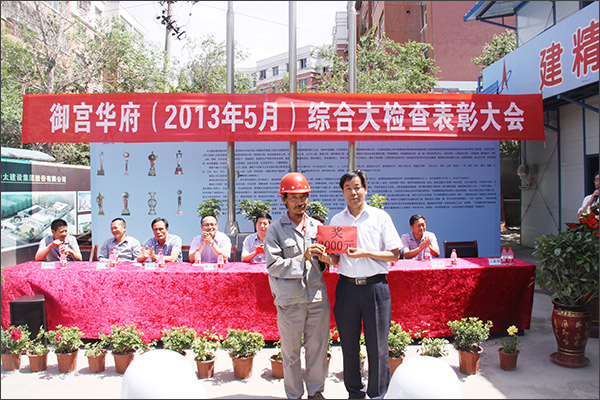 在6月5日這個晴空萬里、陽光燦爛的大好日子里,新疆華春投資集團旗下的地產公司新疆恒潤實業有限公司于御宮華府項目現場,對御宮華府項目的合作伙伴在5月聯合檢查工程質量、安全生產、文明施工的過程中涌現出來的先進施工單位進行了表彰獎勵,新疆福星建設集團有限公司獲工程綜合項目獎、其架子工班組被評為優秀班組,并分別獲得5000元和3000元的獎金。華春集團黨委書記為獲獎單位頒發了獎金,獲獎單位代表發表了獲獎感言,董事局主席助理恒潤公司總經理鮑元清講話,華春工會主席代表集團致辭。