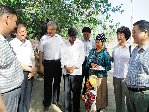 6月23-25日,由自治區政協副主席李湘林帶領自治區政協提案委員會和林業廳有關領導以及新疆華春投資集團副總裁常青、工會主席高青一行6人組成的調研組,赴喀什地區巴楚縣夏馬勒鄉喀什噶爾買里村進行調研扶貧,華春投資集團為該村和貧困戶捐助現金共14萬元,為新疆的貧困地區的少數民族農民獻上一片愛心。
