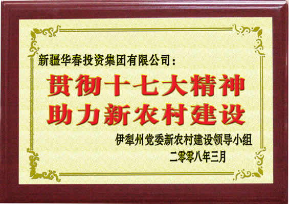 “貫徹十七大精神,助力新農村建設”榮譽證書